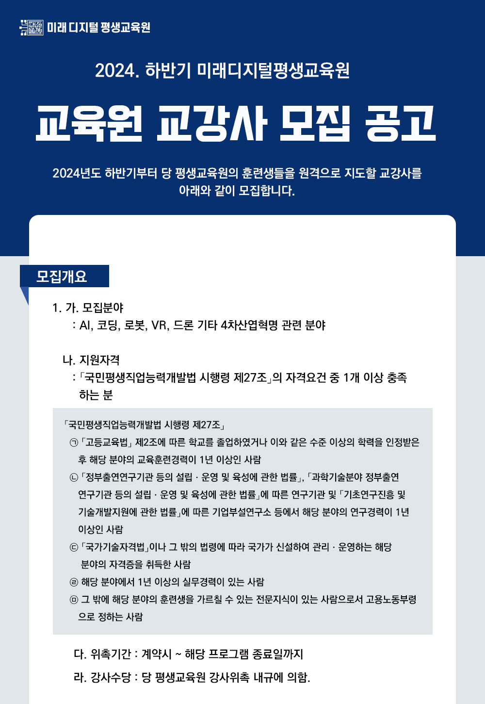 2024. 하반기 교육원 교강사 모집 공고 관리자 / 2024.07.24